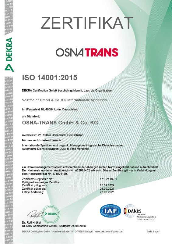 Wir haben im Jahr 2025 erstmals ein Umweltmanagementsystem implementiert, das durch einen unabhängigen Auditor geprüft wurde, um unser Engagement für Nachhaltigkeit zu demonstrieren.